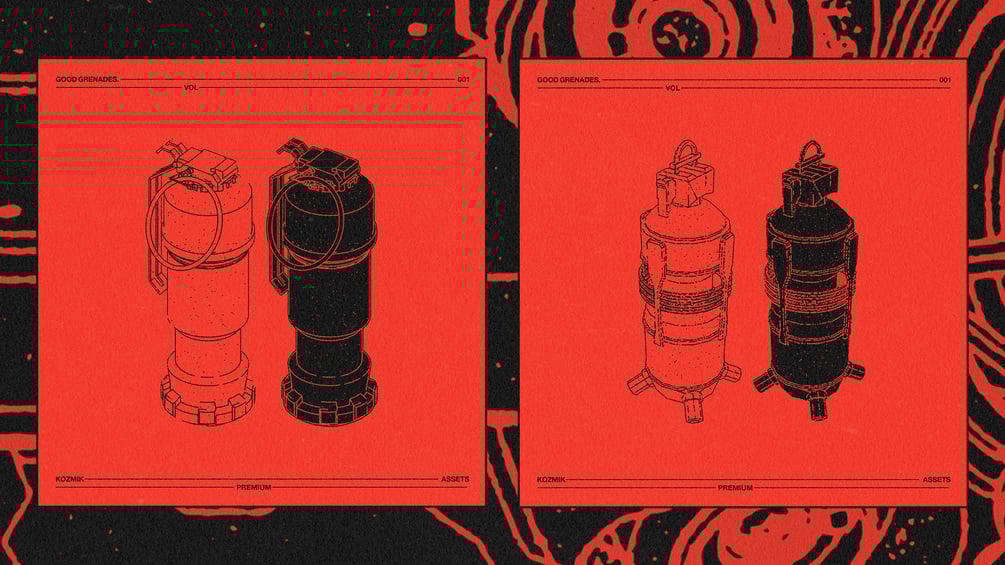 10 fully editable grenade styles with 100+ variations, each grenade has 3 shot angles and 4 treatment effects to fit any style you are working on.